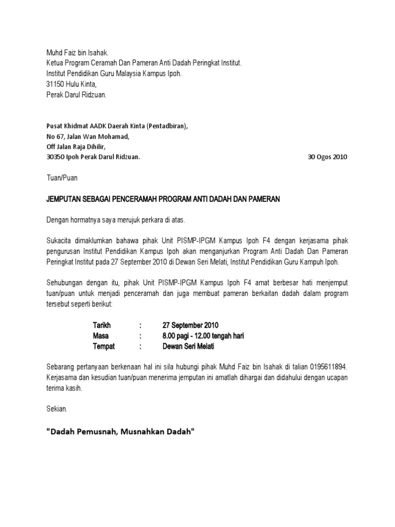 Surat Jemputan Penceramah Aadk Pdf